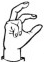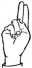 На ћирилици написано АНДРИЈА КАЗНОВАЦ састоји се из 15 слова [?]. Исписано ћириличном једноручном азбуком за глувонеме: